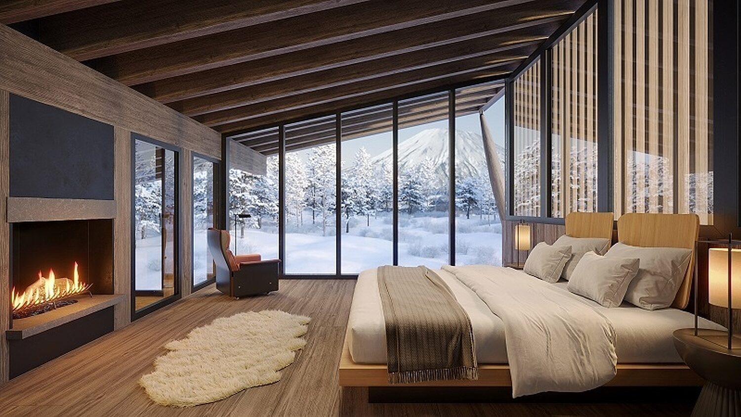 The two hearts of the master-planned project are formed by an alpine lifestyle hotel concept marking the entrance of the village, and one of the most tasteful and private clubhouses in Japan. Guests are provided with a library-lounge and bar, health and fitness facilities, supported by F&B offerings and spaces to host exclusive private events.